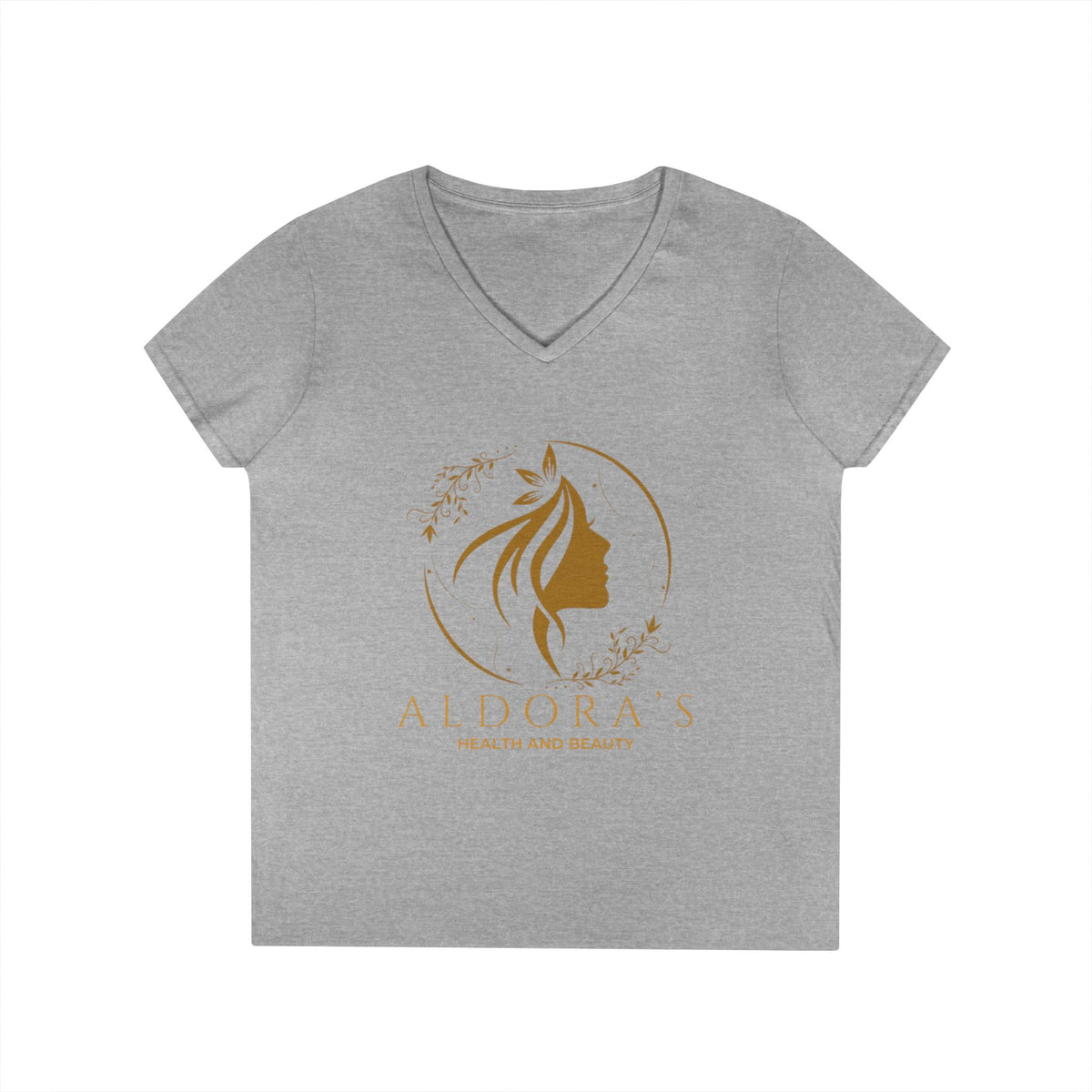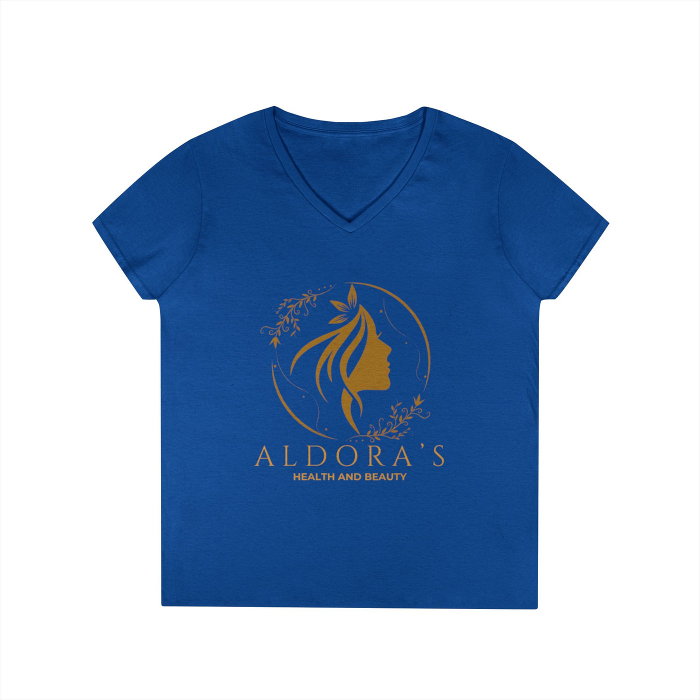 Soft, breathable cotton meets a graceful salon-inspired emblem. This semi-fitted V-neck lays smoothly across the shoulders, the ribbed collar and shoulder tape keeping the shape through many wears. The front features a delicate, gold-tone floral crest and silhouette that reads as both feminine and professional — a quiet nod to beauty and care. Wear it to client consultations, behind-the-chair shifts, or on slow mornings when you want to feel both comfortable and put-together. The medium-weight fabric drapes gently without clinging, and the tear-away label keeps the neckline itch-free. Subtle, refined, and thoughtfully finished for everyday wear in beauty and wellness spaces.